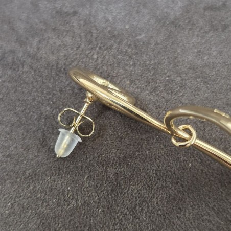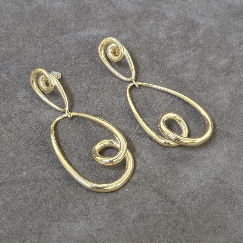 Boucles d'oreilles longues, légères et confortables pour oreilles percées en acier inoxydable doré. Elles arborent une forme spiralée et ajourée, symbole de mouvement et d'harmonie. Leur design fluide et moderne et leur éclat doré apporteront une touche artistique et sophistiquée à votre style.
