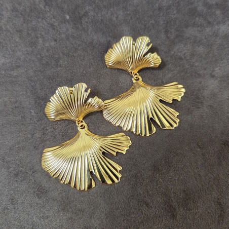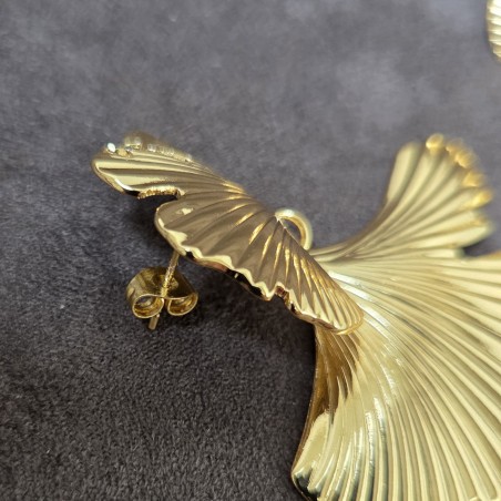 Boucles d'oreilles légères et intemporelles pour oreilles percées, dorées. Inspirées des feuilles de gingko, ces boucles d'oreilles dorées capturent la beauté organique avec un éclat raffiné.