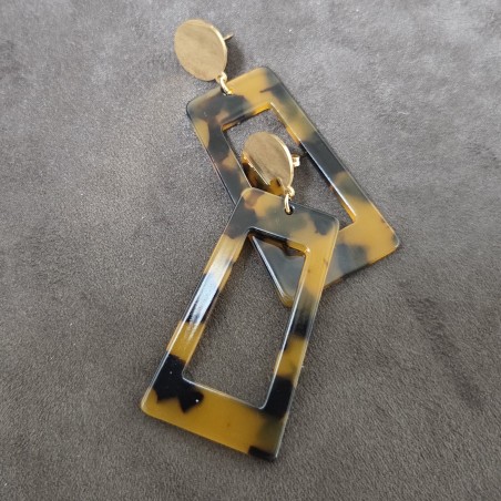 Boucles d'oreilles créoles en résine géométriques, motif léopard, pour oreilles percées. Accessoires de mode incontournables, les nuances de brun et de jaune imitent parfaitement la peau de léopard.