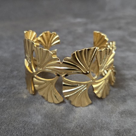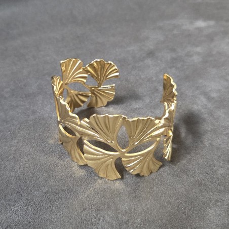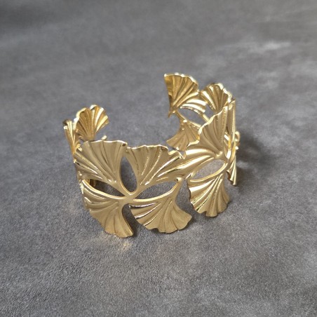 Bracelet manchette design feuilles de ginkgo