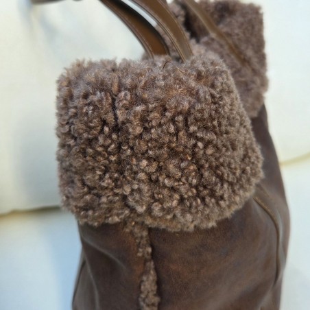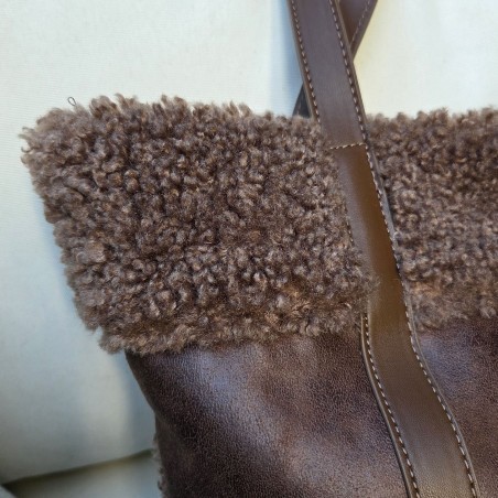 Sac-cabas façon cuir chocolat, bordé et doublé de fausse fourrure bouclée dans le même ton. Ce sac super tendance est disponible en trois coloris pour s'adapter parfaitement à toutes vos tenues.