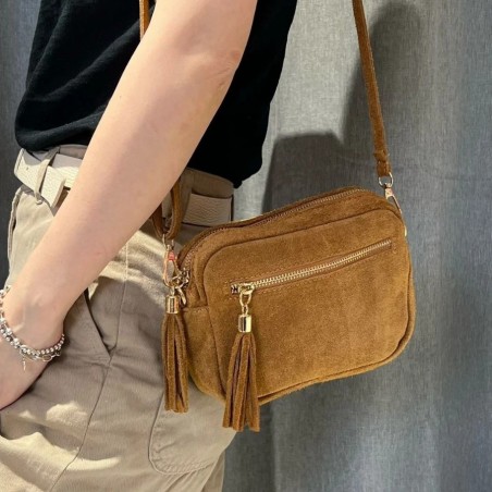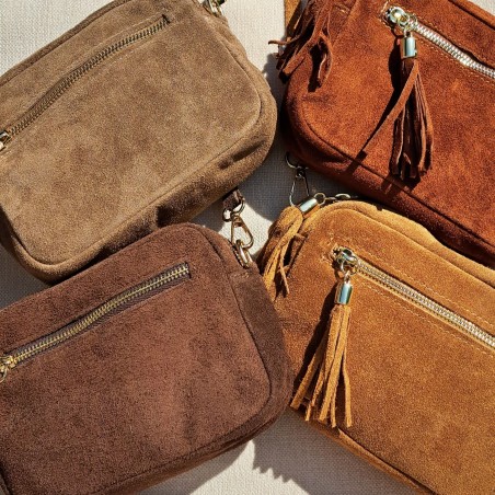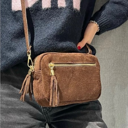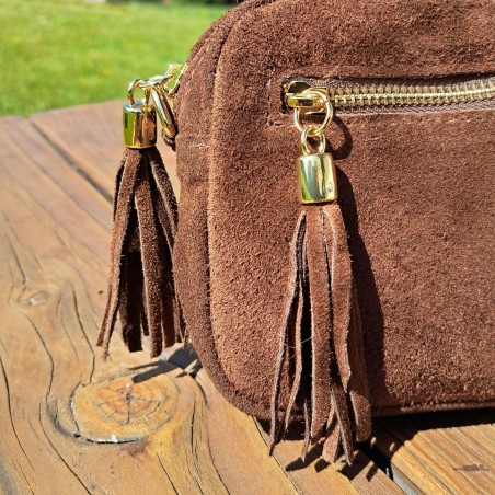 Petit sac en daim marron très mignon, super pratique et qui sera parfait avec beaucoup de vos tenues.